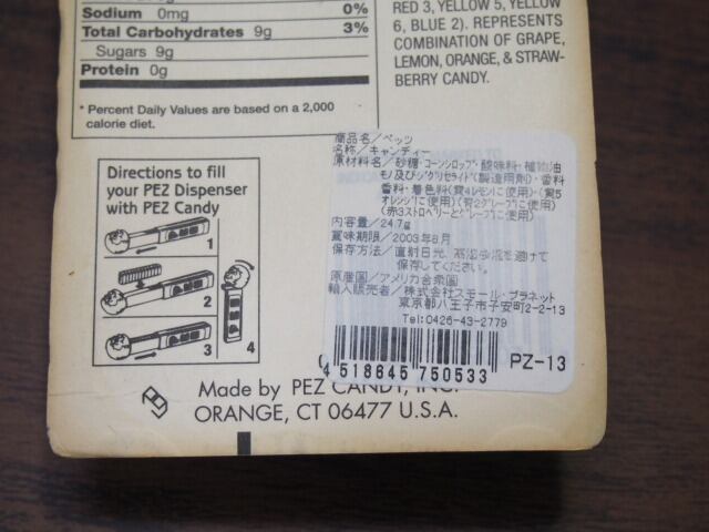 賞味期限は2003年8月になっていますので、2003年前半に販売された並行輸入品です。